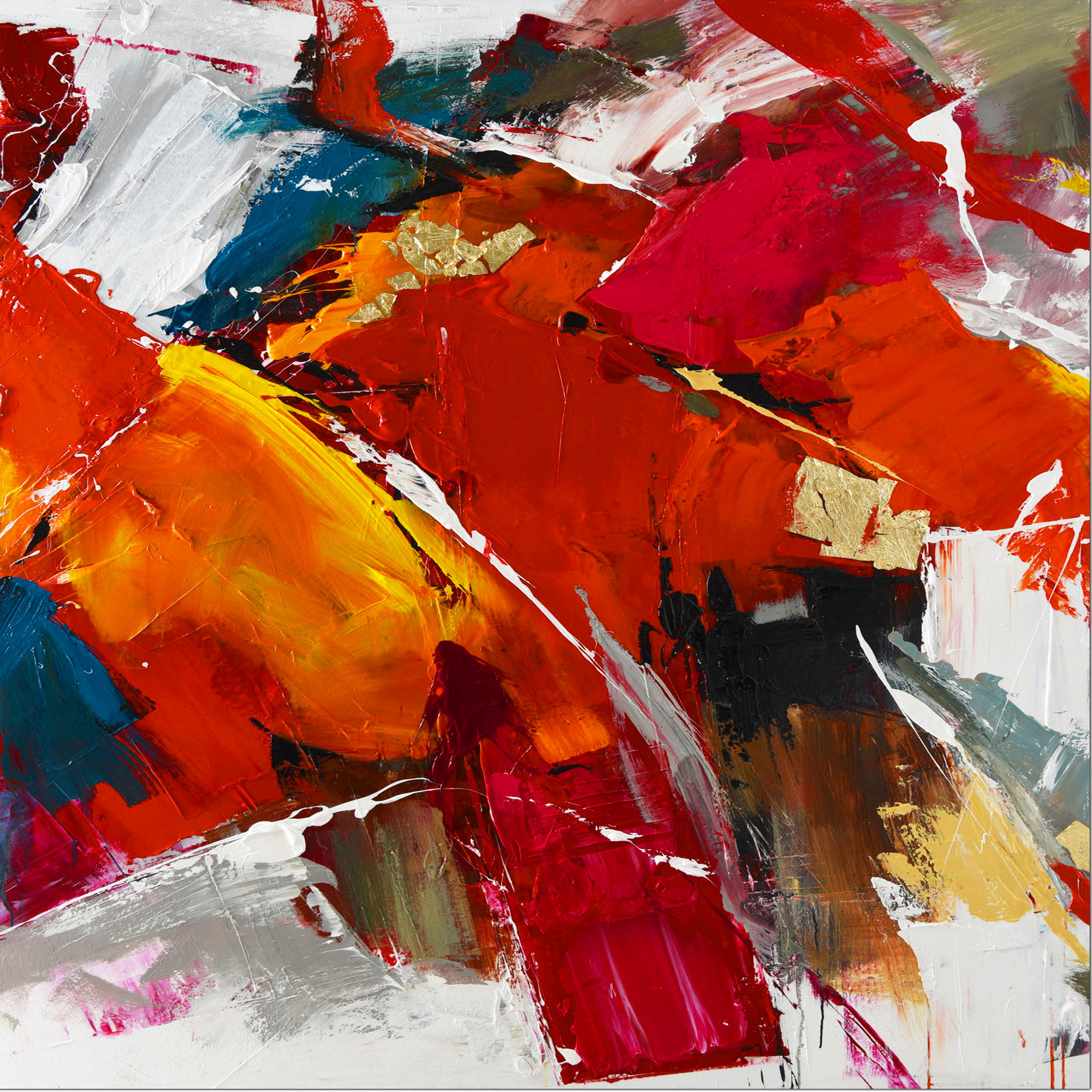 PXFC244 Wall décor art oil on canvas abstract red yellow silver tones PXFC244 Wall décor art oil on canvas abstract red yellow silver tones