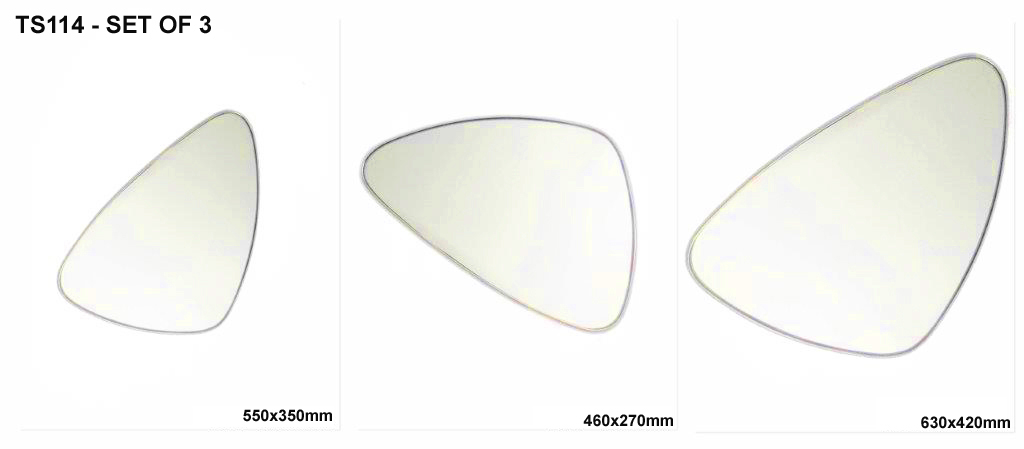 TS114 Wall décor mirror modern small triangular rounded silver frame set of 3 TS114 Wall décor mirror modern small triangular rounded silver frame set of 3