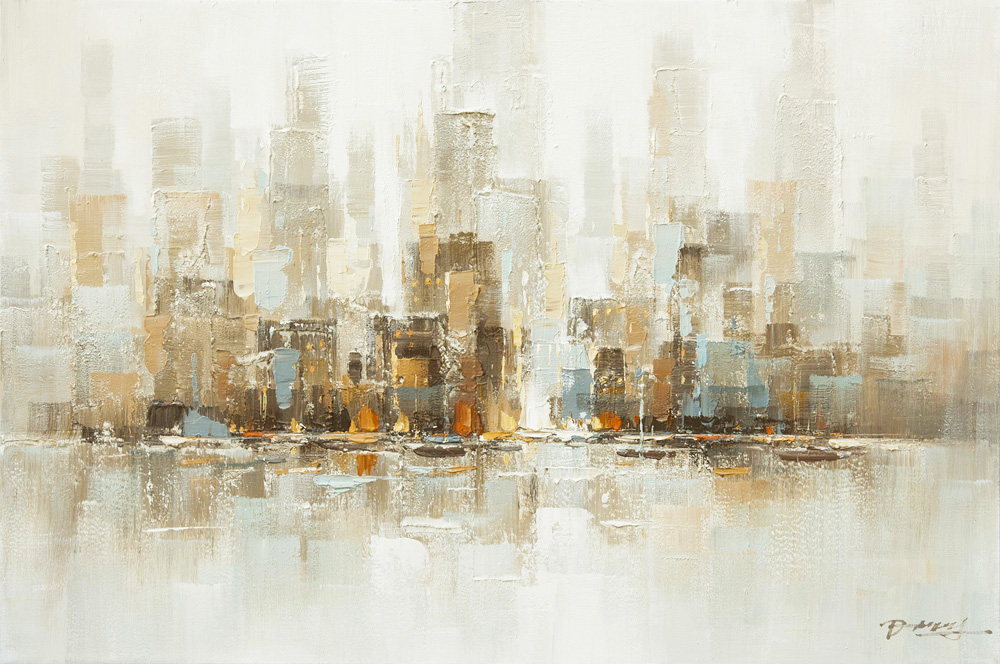 PXYW638 Wall décor art oil on canvas abstact skyline blue grey tones PXYW638 Wall décor art oil on canvas abstact skyline blue grey tones